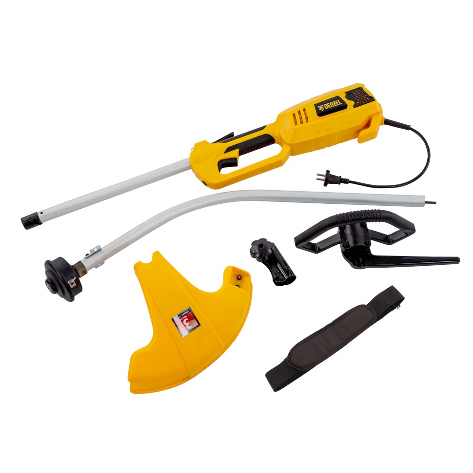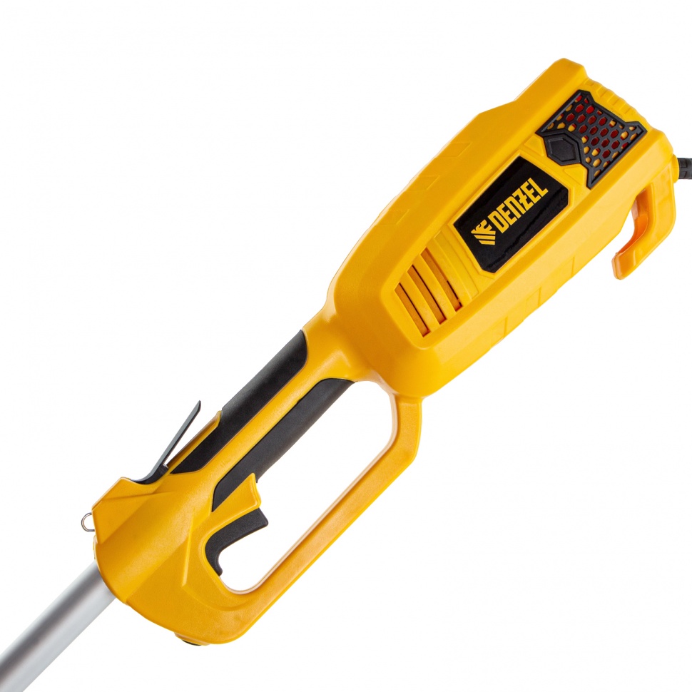 Электрический триммер Denzel TE-1100 с разборной штангой предназначен для скашивания травы на дачном участке. Мощный двигатель на 1100 Вт обеспечивает вращение катушки на триммере со скоростью 6500 об/мин. Ширина скашивания за один проход составляет 38 см, что удобно для работы на небольших участках. Электродвигатель не требует приготовления топливной смеси и сложного технического обслуживания. Благодаря отсутствию вредных выбросов и неприятного запаха работа триммера для газона не вредит здоровью и не вызывает дискомфорт.