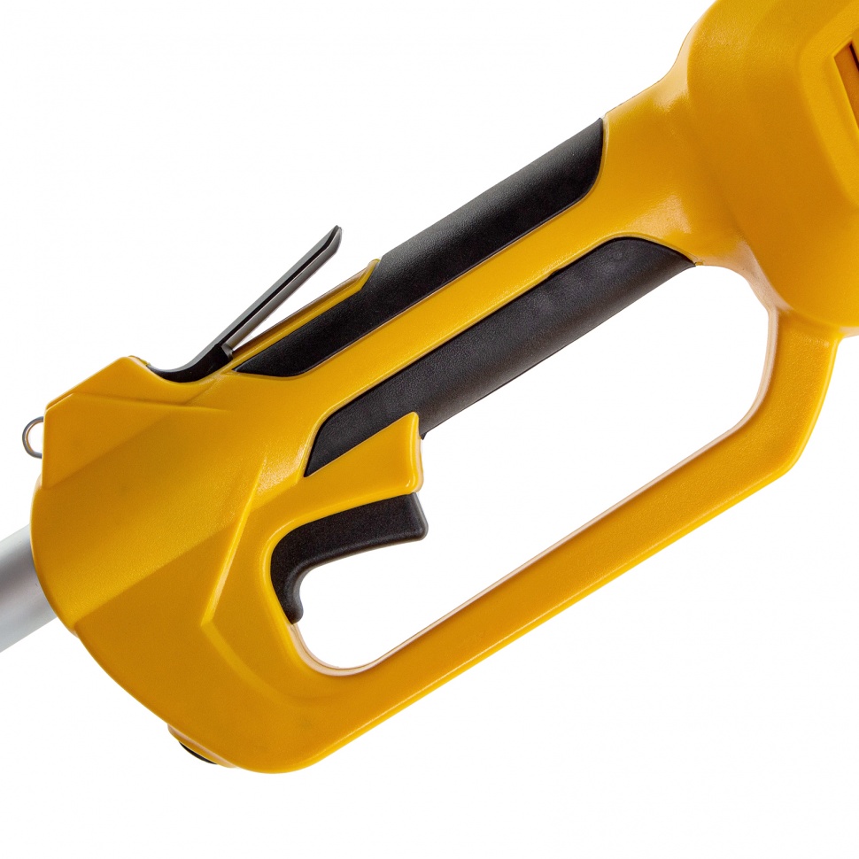 - Удобное хранение и транспортировка — благодаря разборной штанге садовый триммер не занимает много места.