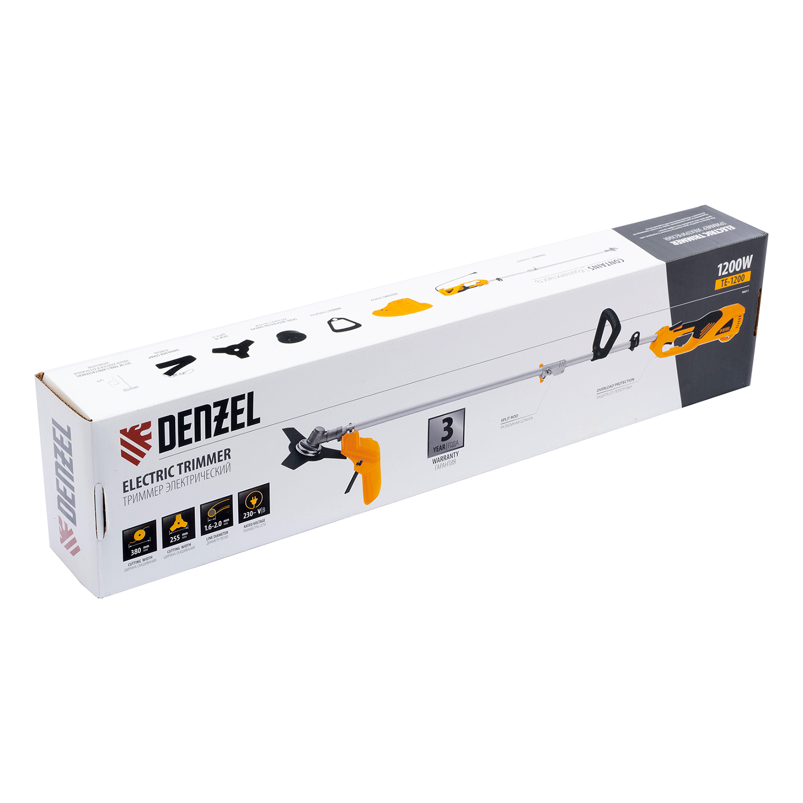 Триммер Denzel TE-1200 96611 мощностью 1200 Вт, с разборной штангой, комплектуется катушкой с леской и 3-лопастным диском, ширина скашивания составляет 380 мм и 255 мм соответственно. Идеален для скашивания травы различных типов, в том числе с жесткими стеблями (полыни, крапивы, лебеды). Благодаря верхнему расположению двигателя может косить мокрую траву.