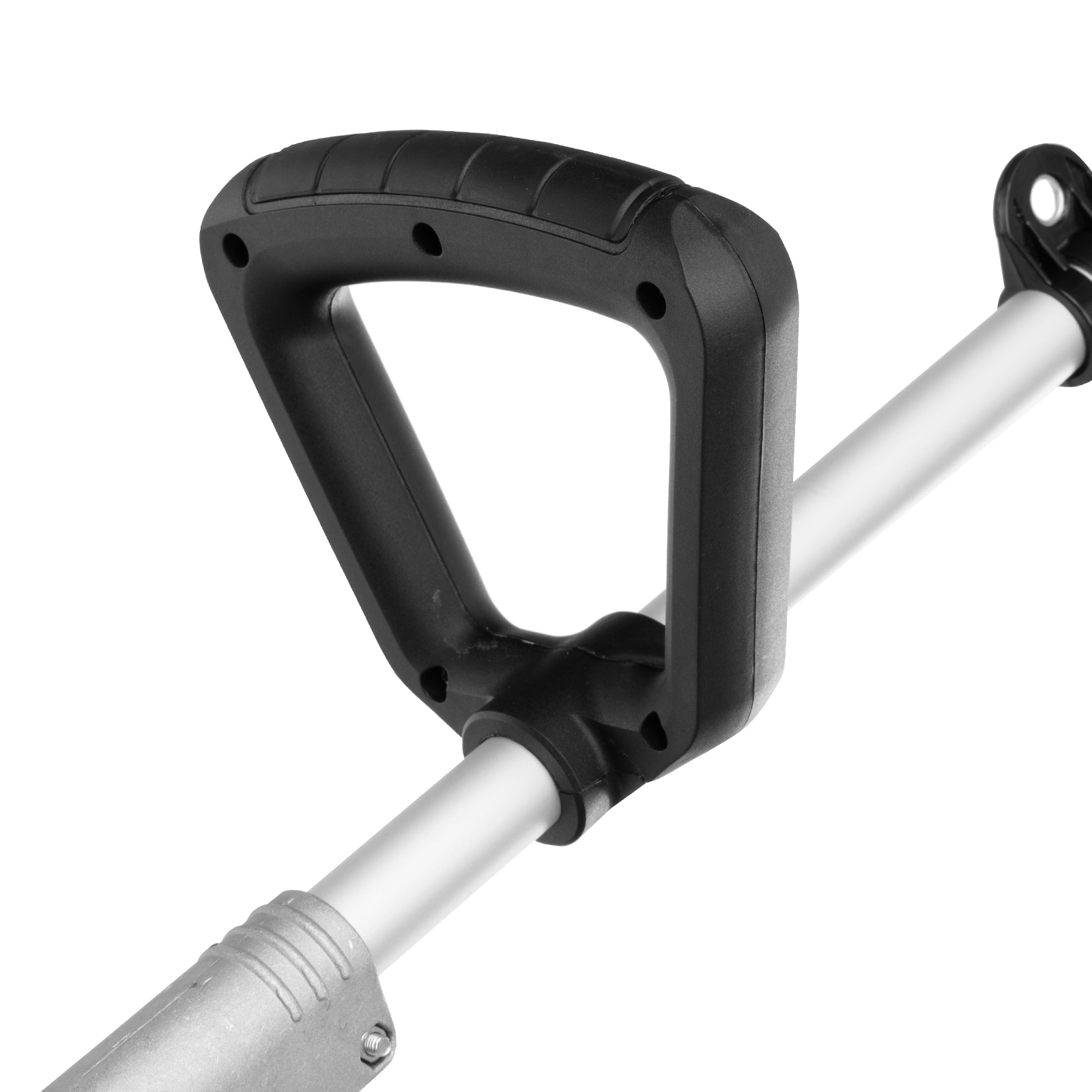 - Удобное управление — благодаря плечевому ремню, регулируемому кольцу крепления и D-образной ручке триммер легко удерживать и направлять.