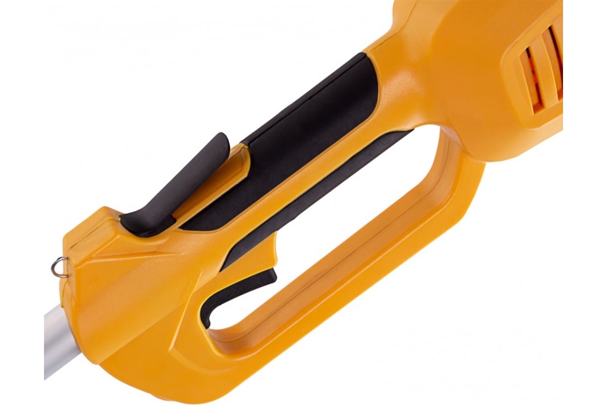 - Удобное хранение и транспортировка — благодаря разборной штанге садовый триммер не занимает много места.