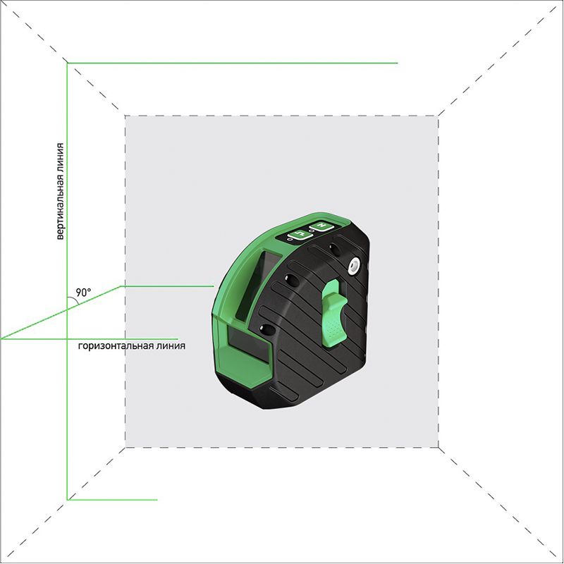 ПЕРЕСЕКАЮЩИЕСЯ ПЛОСКОСТИ ПОД 90°. С помощью линий пересекающихся под прямым углом (угол между лазерными плоскостями 90°) можно быстро выполнять разметку для ровной установки материалов или конструкций.
