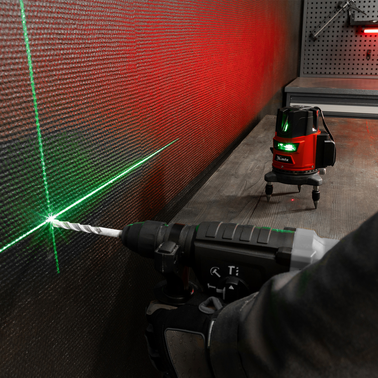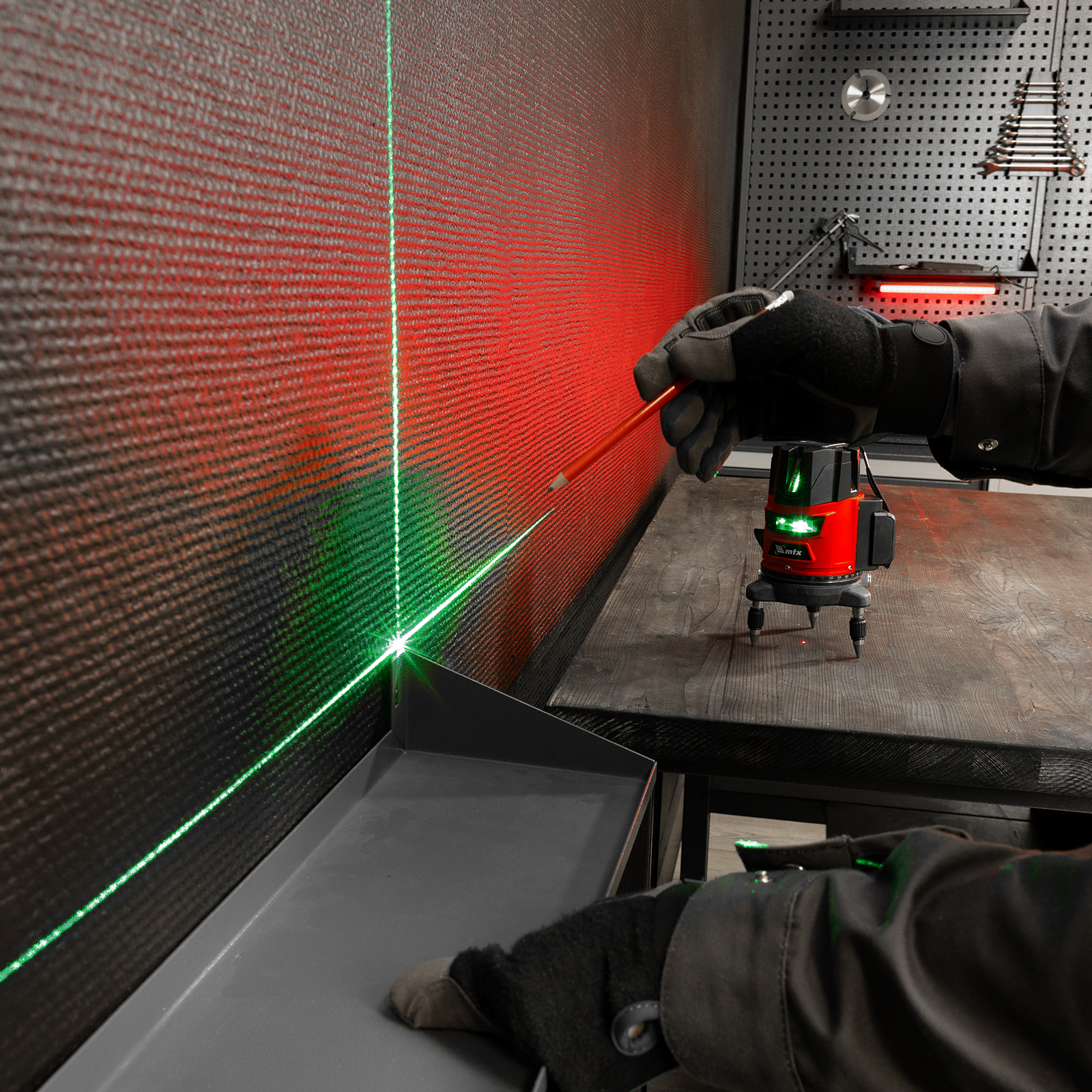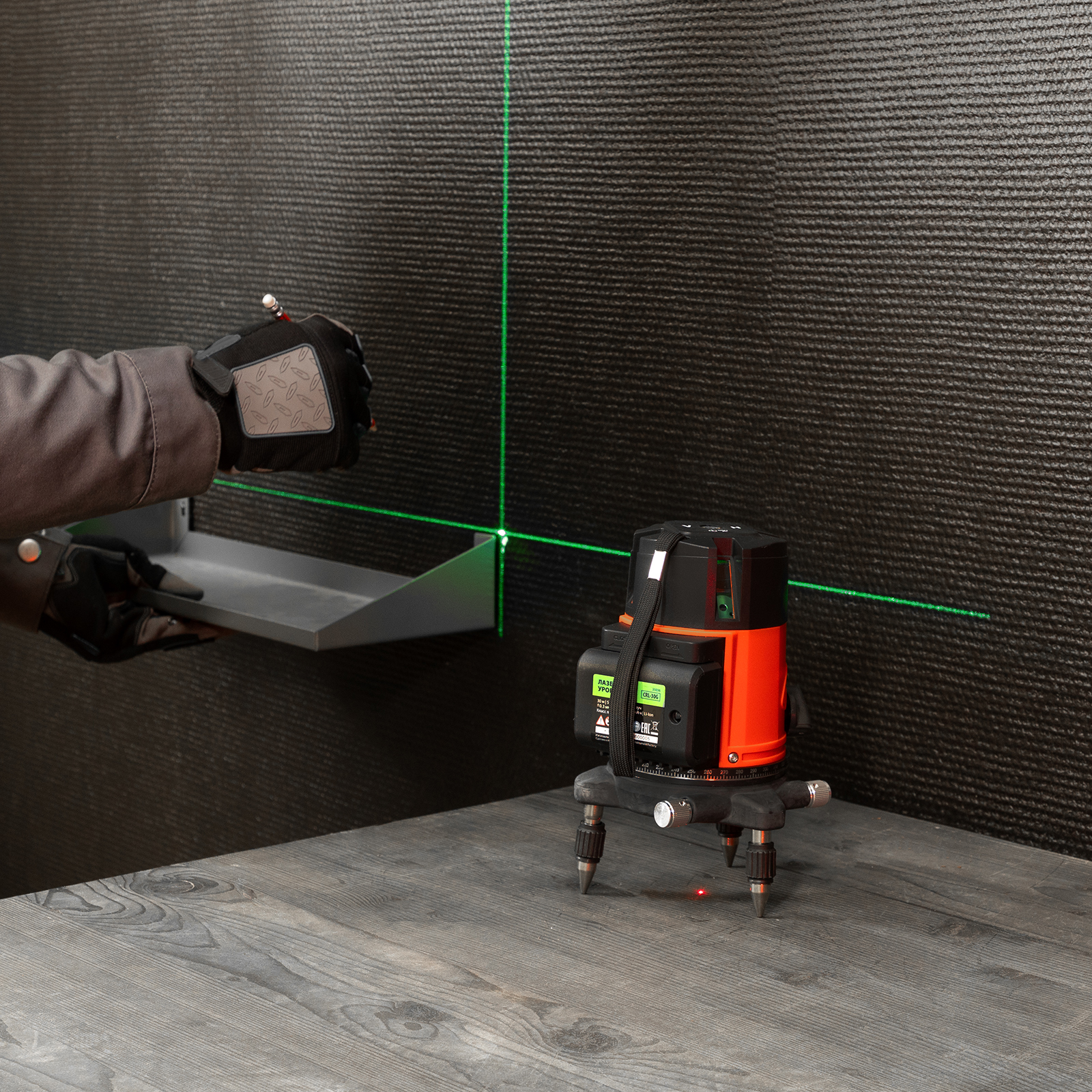 Лазерный уровень MTX CRL-30G 35036 с резьбой 5/8″ под штатив, в комплекте с батарейками, проецирует на поверхность 1 горизонтальный, 4 вертикальных луча зеленого цвета и точку отвеса дальностью до 30 м. Подходит для бытового применения в помещениях. Погрешность измерений составляет всего ±1,5 мм 5 м.