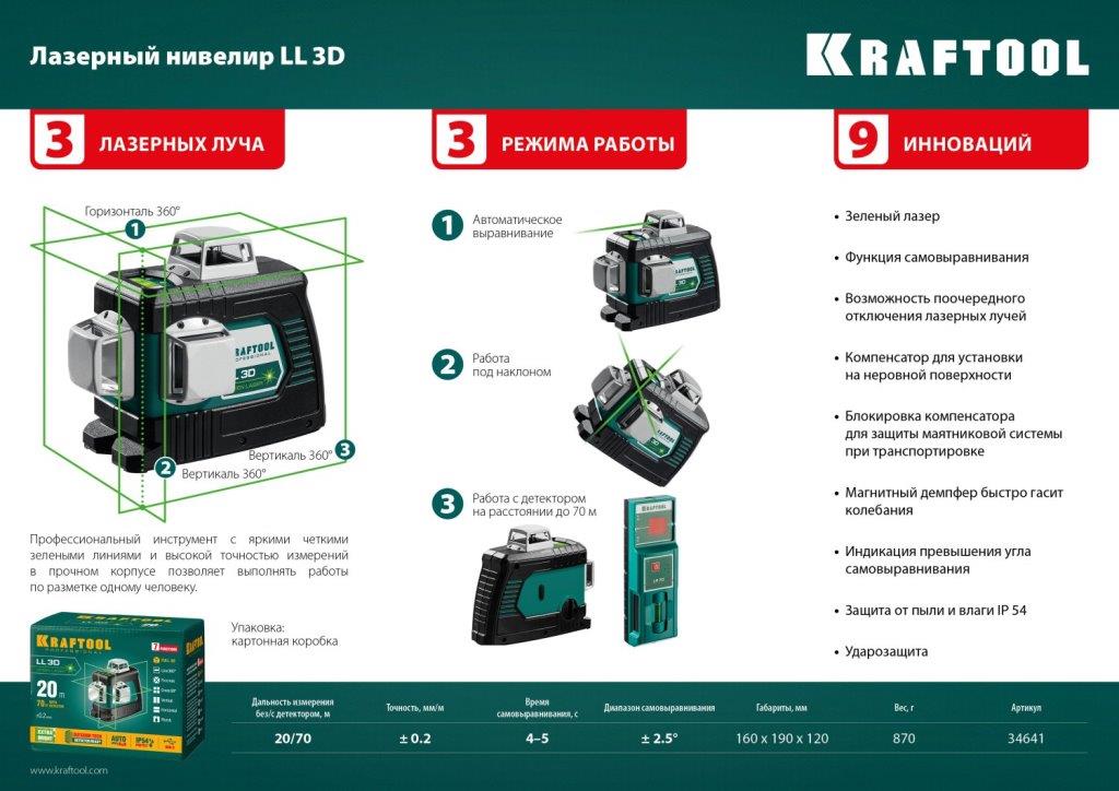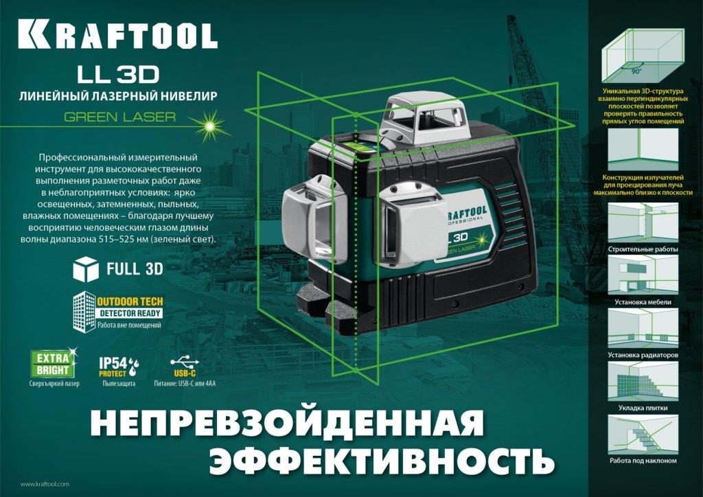 Нивелир лазерный зеленый KRAFTOOL LL 3D