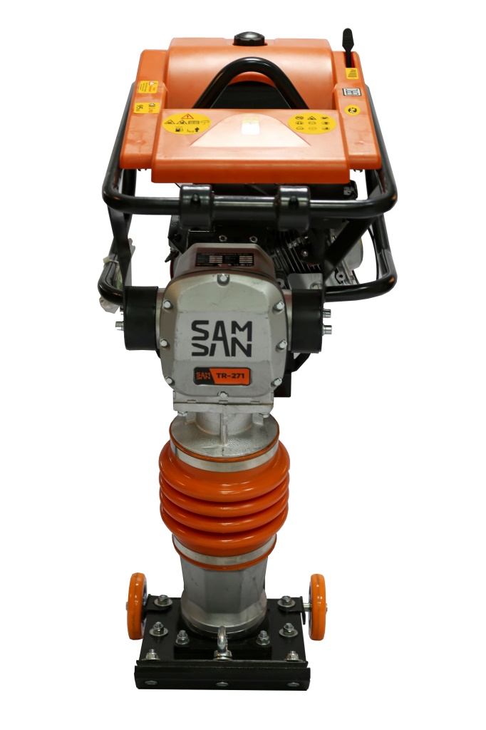 Вибротрамбовка SAMSAN TR271, хорошо сбалансированная модель, легкая и простая в управлении, специальные демпферы и подошва, снижают вибрацию, передаваемую на оператора.