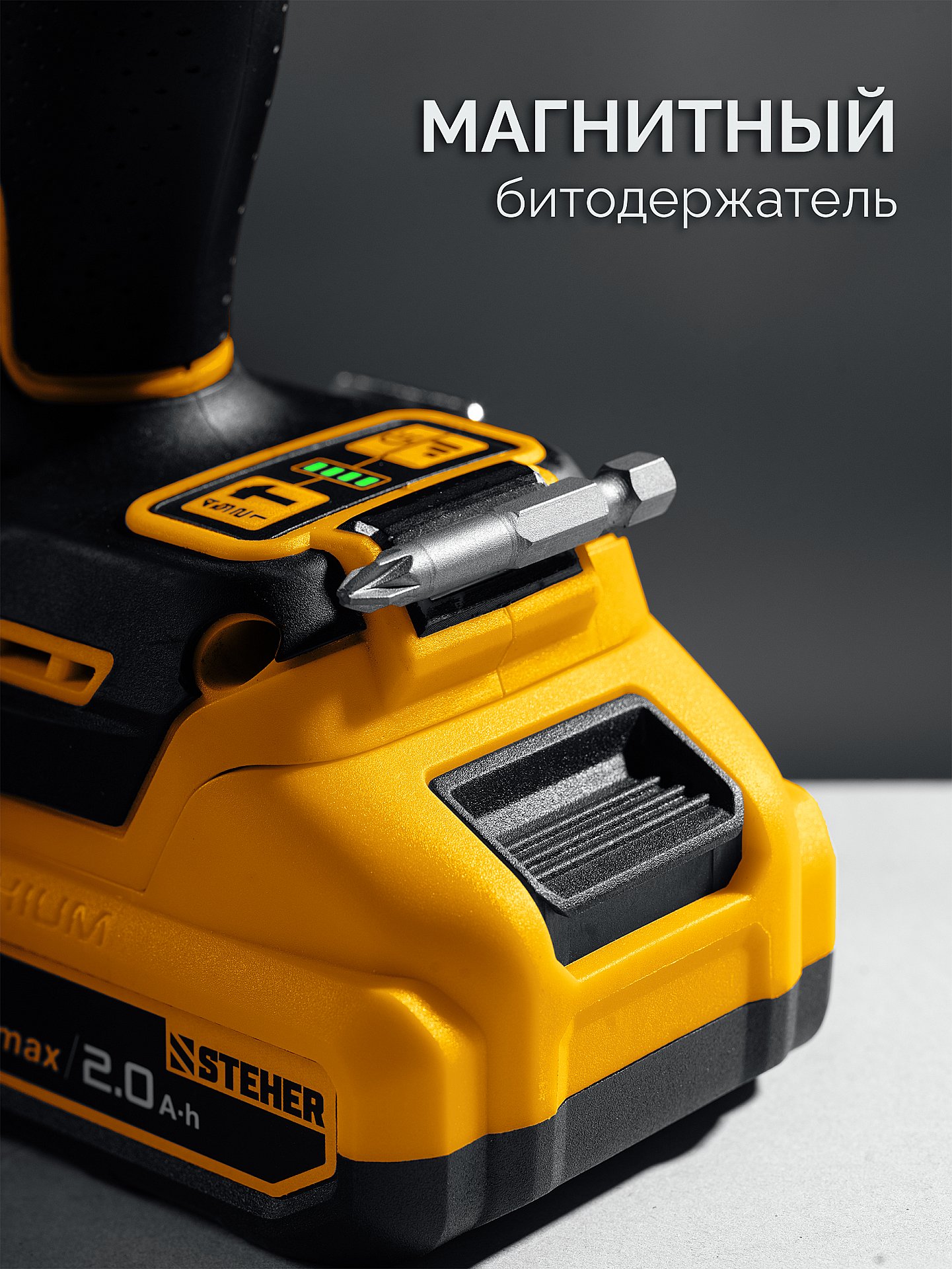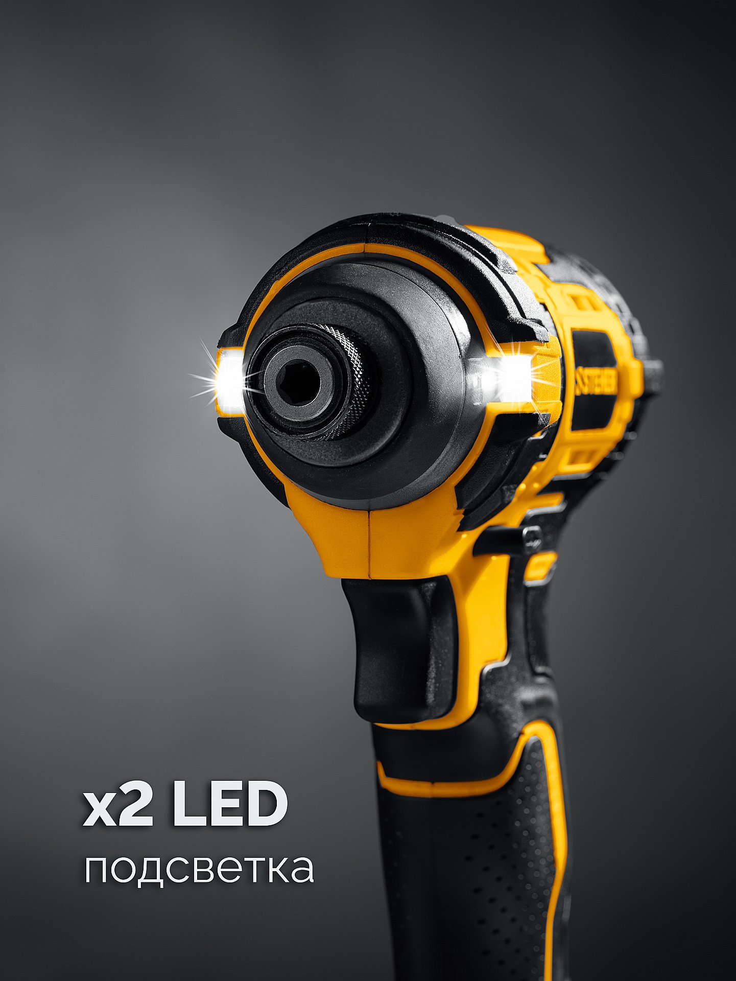 - Быстрозажимной патрон HEX 1/4'' с фиксатором позволяет устанавливать стандартные биты
