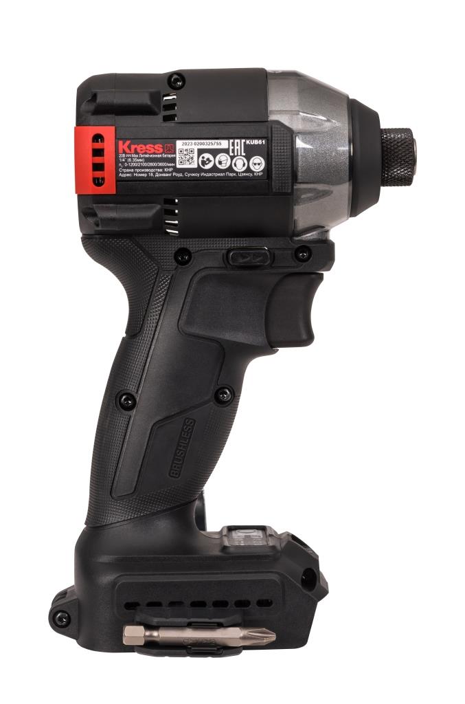 KRESS KUB61.9 это компактный и легкий винтоверт c бесщеточным двигателем, который значительно улучшает характеристики устройства по сравнению с щеточной моделью. А именно благодаря такому типу мотора винтоверт меньше нагревается, работает до 50% дольше и имеет на 25% больше крутящий момент. А самое главное срок службы мотора до 10 раз дольше. Модель оснащена патроном 6.35мм (Hex 1/4 дюйма). Также винтоверт несмотря на компактный размер, обладает крутящим моментом 230 Нм с 3 настройками скорости, обеспечивая скорость 3600 об/мин и частоту ударов до 4200 уд/мин, что делает его более чем подходящим для различных работ по закручиванию и откручиванию. Винтоверт оснащен светодиодной подсветкой рабочей зоны. Предназначен для работы с аккумуляторами KRESS KROSSPACK® 20В, которые взаимозаменяемы с другими инструментами KRESS. Внимание: этот комплект поставляется без аккумулятора (АКБ) и зарядного устройства (ЗУ). Технические характеристикиТип двигателя: Бесщеточный. Напряжение аккумулятора: 20 В. Тип аккумулятора: Li-lon. Размер патрона: 6,35 мм Тип патрона: HEX 1/4" Max крутящий момент: 230 Нм. Частота вращения шпинделя: 0-1200/2100/2800/3600 об/мин. Частота ударов: 0-1500/2800/3400/4200 уд/мин Наличие подсветки: есть. Вес устройства без АКБ: 1,0 кг.