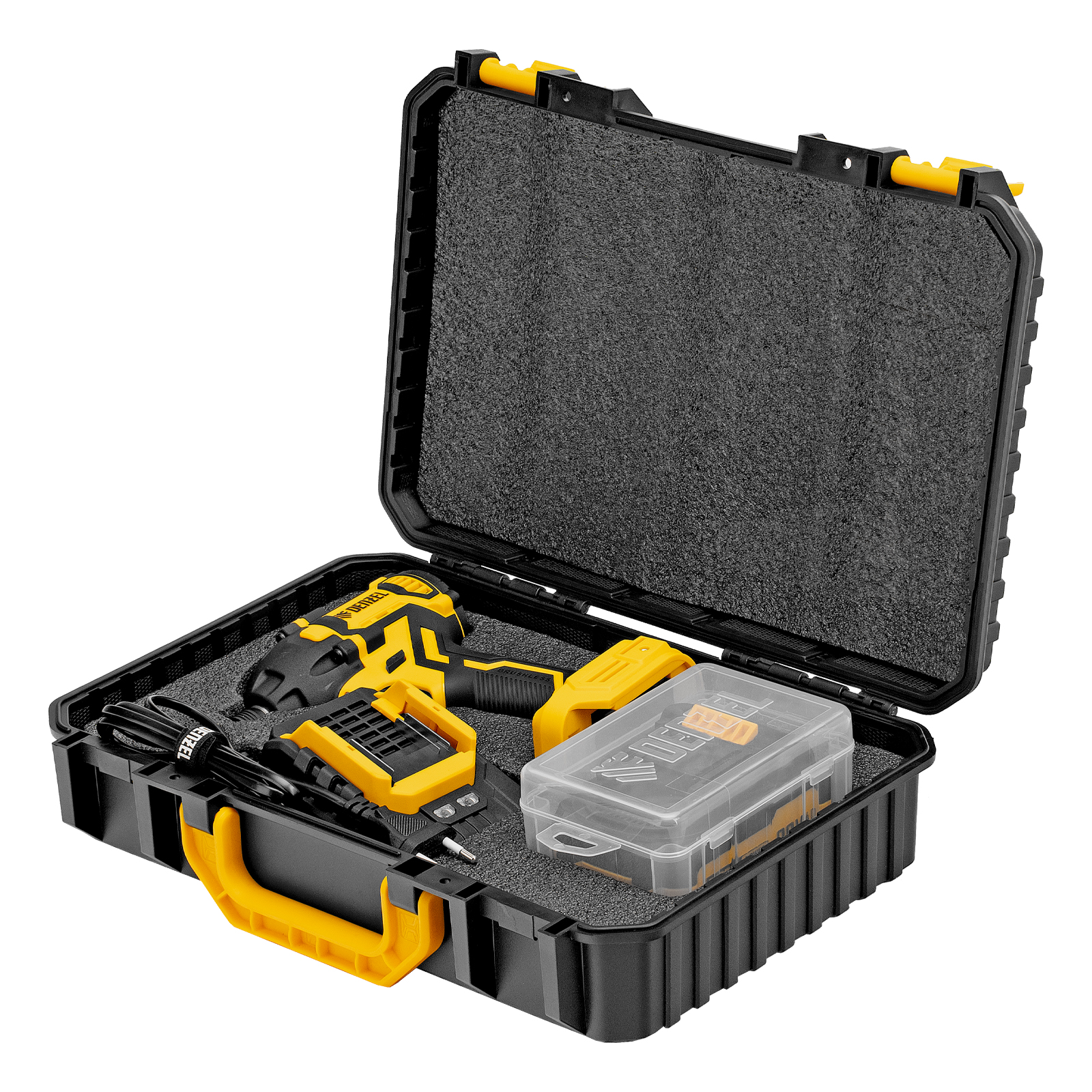 - Удобное хранение и транспортировка — винтоверт с аксессуарами упакован в прочный кейс.