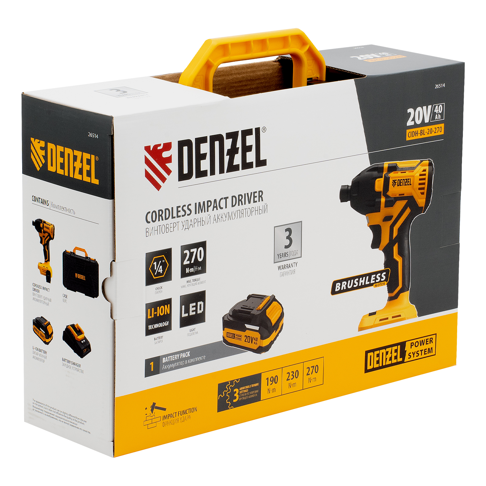 Винтоверт ударный аккумуляторный бесщет. CIDH-BL-20-270, Li-Ion, 20 В// Denzel