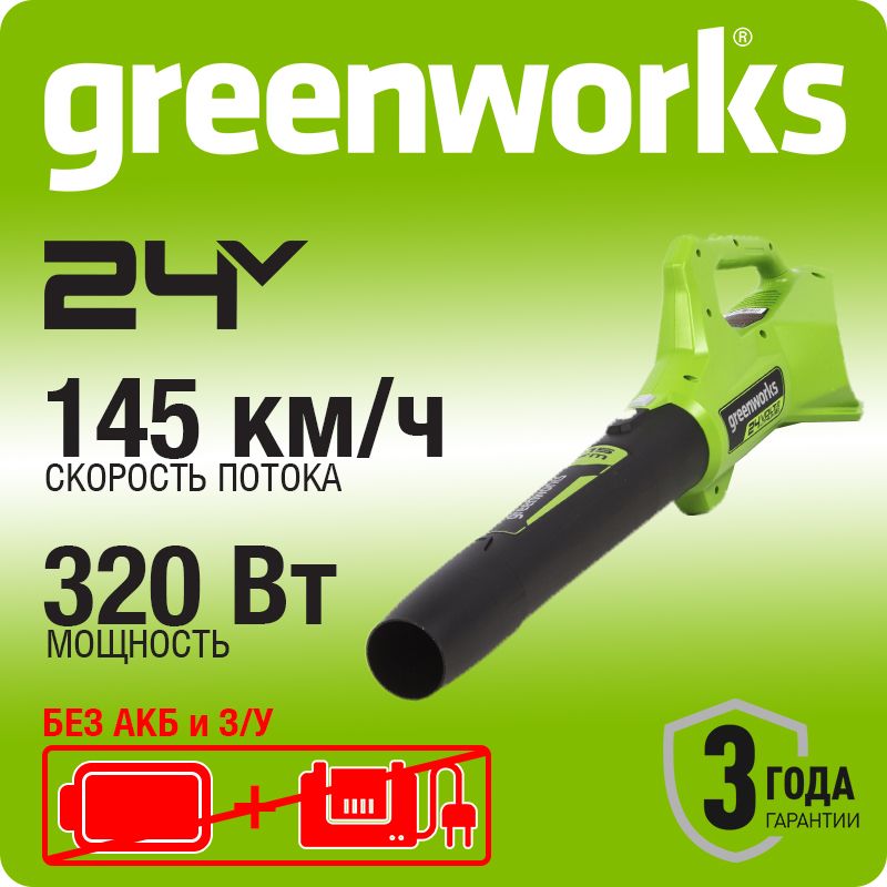 Воздуходувка аккумуляторная Greenworks G24AB (2404807), 24 V, без АКБ и ЗУ.
